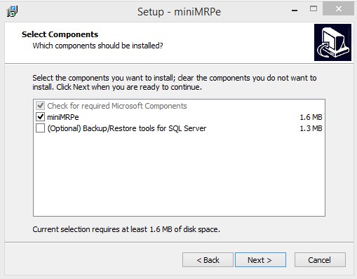 - Optional backup/Restore tools. You only need to install these tools if you intend to migrate up to MS SQL Server. Without these tools miniMrp can still back up and restore its own non-sql database. If you do intend migrating to SQL Server then these tools should only be installed on the machine where your instance of MS SQL Server is running.