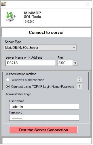 Setting up MiniMRP to connect to SQL Server