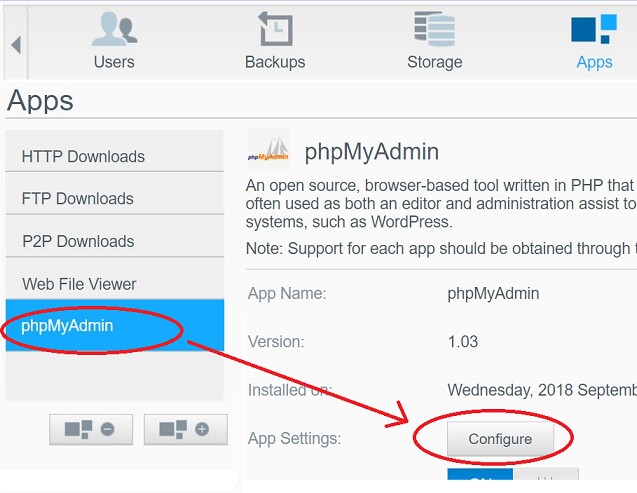 Click phpMyAdmin so it's highlighted blue then click the 'Configure' option.