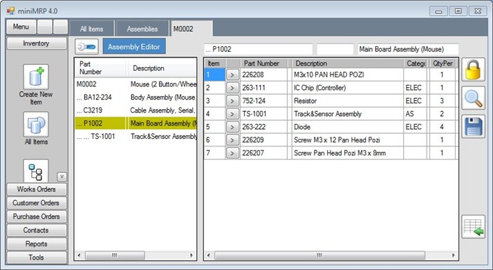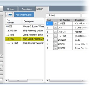 Using the multi-level editor you can move quickly up and down through the levels of our parts list making any changes you want to the assembly.